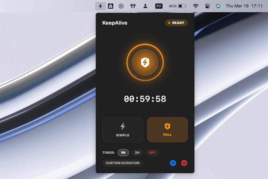 KeepAlive is a premium, high-performance macOS utility designed to prevent your system from falling asleep. Whether you need to run long-running Python scripts, keep a remote session active, or prevent your screen from dimming during a presentation, KeepAlive provides a sleek and reliable solution.