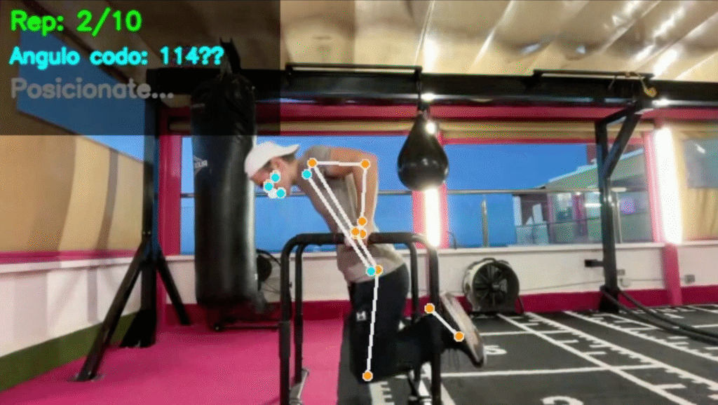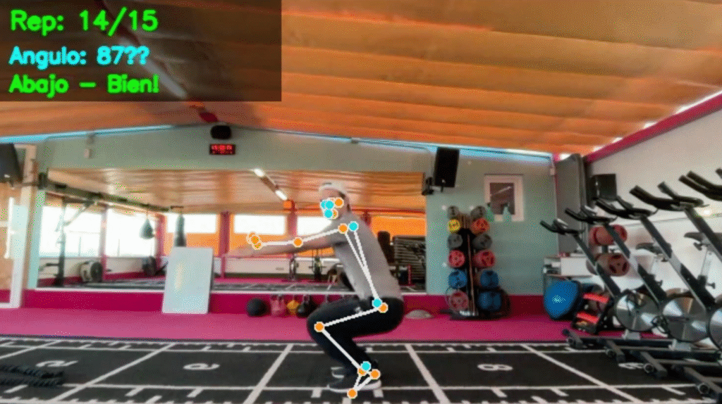 It counts reps automatically, detects the bottom and top position, tracks angles, and tells you exactly when a rep is clean.